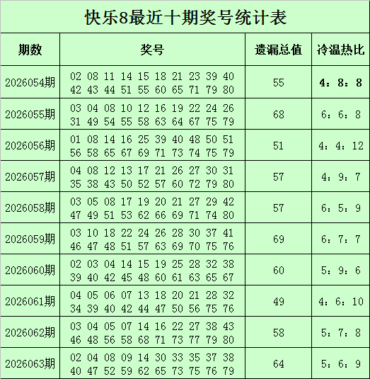 杨光振作8第2026064期奖号冷温热分析(界说:遗漏0-1期号码为热码,遗漏2-4期号码为温码,遗漏4期以上号码为冷码)